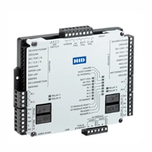 The HID Aero X300 provides on-board IO support for up to twelve control points and four monitor points.