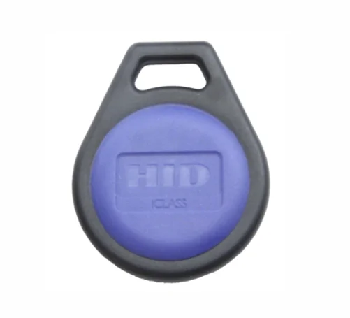The iCLASS Key II provides the power and convenience of iCLASS 13.56 MHz contactless smart card technology in a molded plastic key fob that is durable in harsh environments. This smart credential can be placed on a key ring or lanyard for access control applications that do not require a Photo ID.